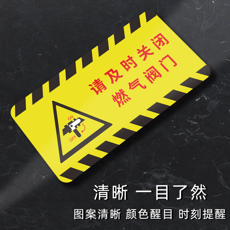请及时关闭燃气阀门警示牌亚克力厨房安全标识牌先点火再开气开窗通风注意事项人离熄火工厂食堂后厨4D管理牌