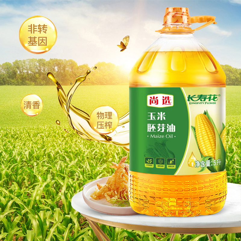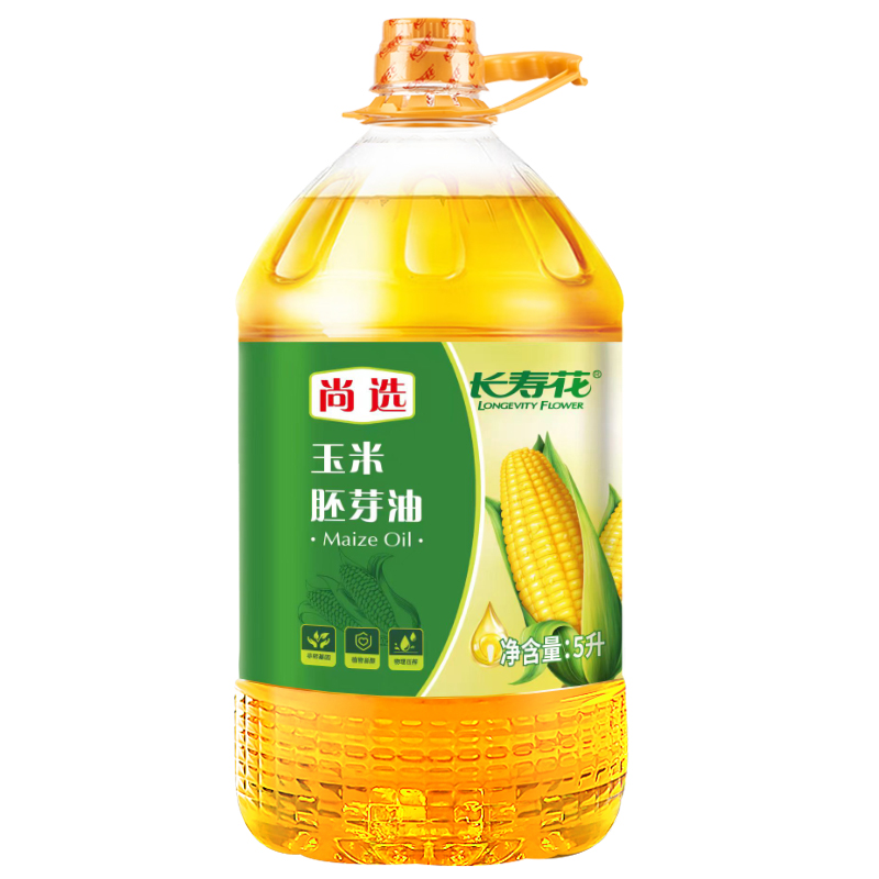 长寿花玉米胚芽油5L*1桶 尚选 物理压榨非转基因食用油煎炒炸拌