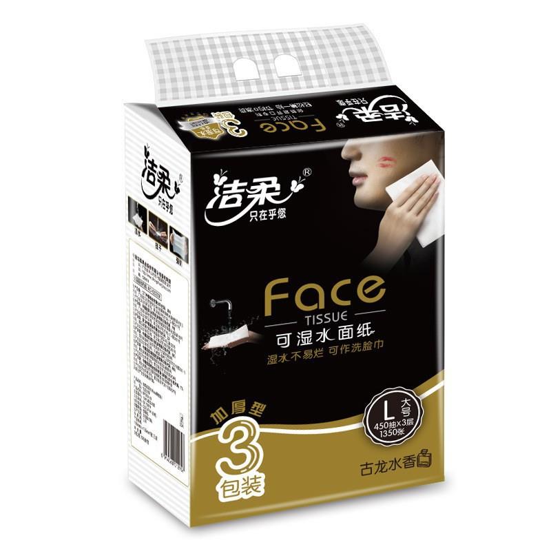 洁柔抽纸黑Face3包提L号3层150抽古龙水香可湿水纸巾支持