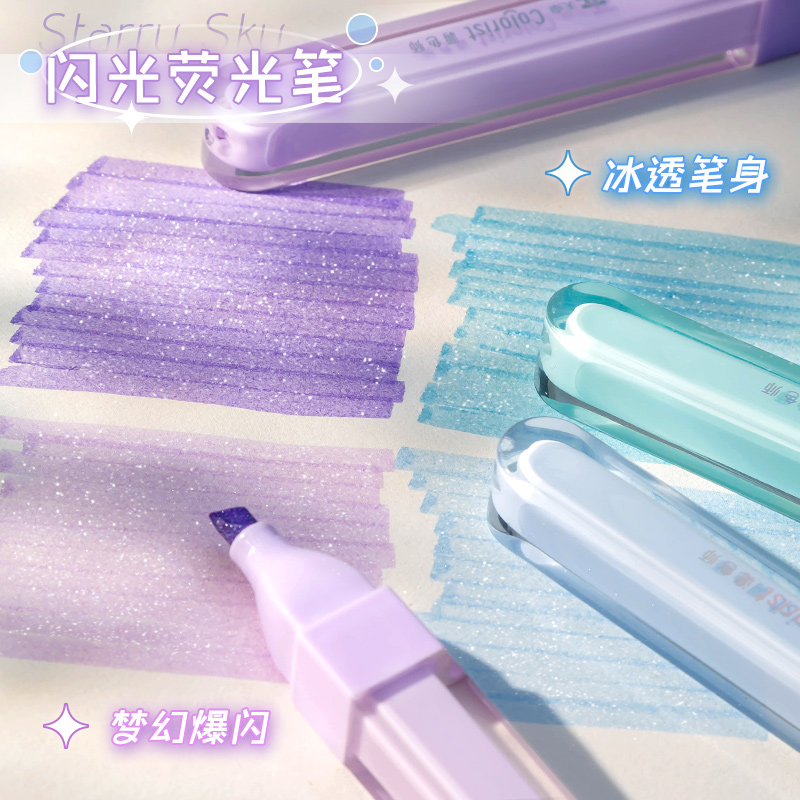 彩色闪光笔啫喱发光亮晶晶流沙银光变色做手账的手帐专用儿童莹光做笔记珠光标记闪亮金属轮廓闪粉水彩笔荧光