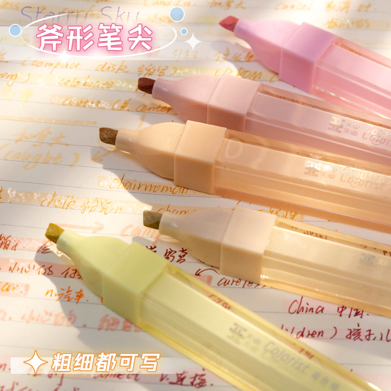 集物社淡色系护眼荧光笔新国风围炉煮茶萤光笔学生用高颜值彩色记号笔大容量划重点标记手账专用银光萤光笔