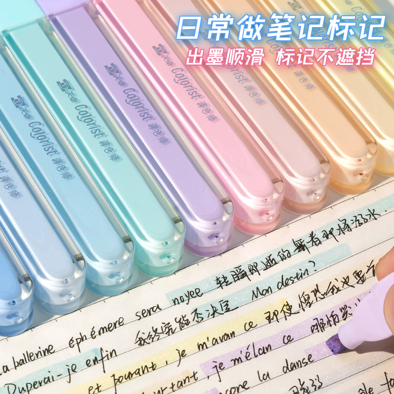 点石三角杆荧光笔12色记号笔简约学生划重点标记笔套装柔色手账笔
