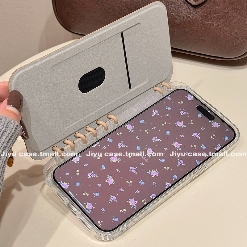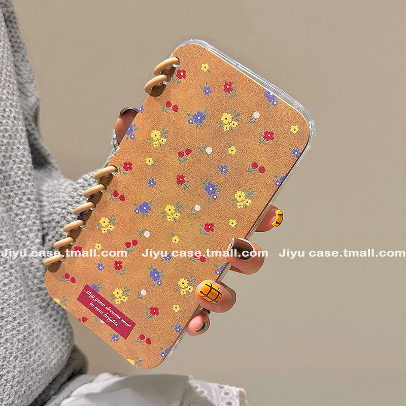秋冬复古棕色小碎花翻盖笔记本适用苹果16promax手机壳iPhone16pro新款15韩风13创意15pro高级感14pm女16全包