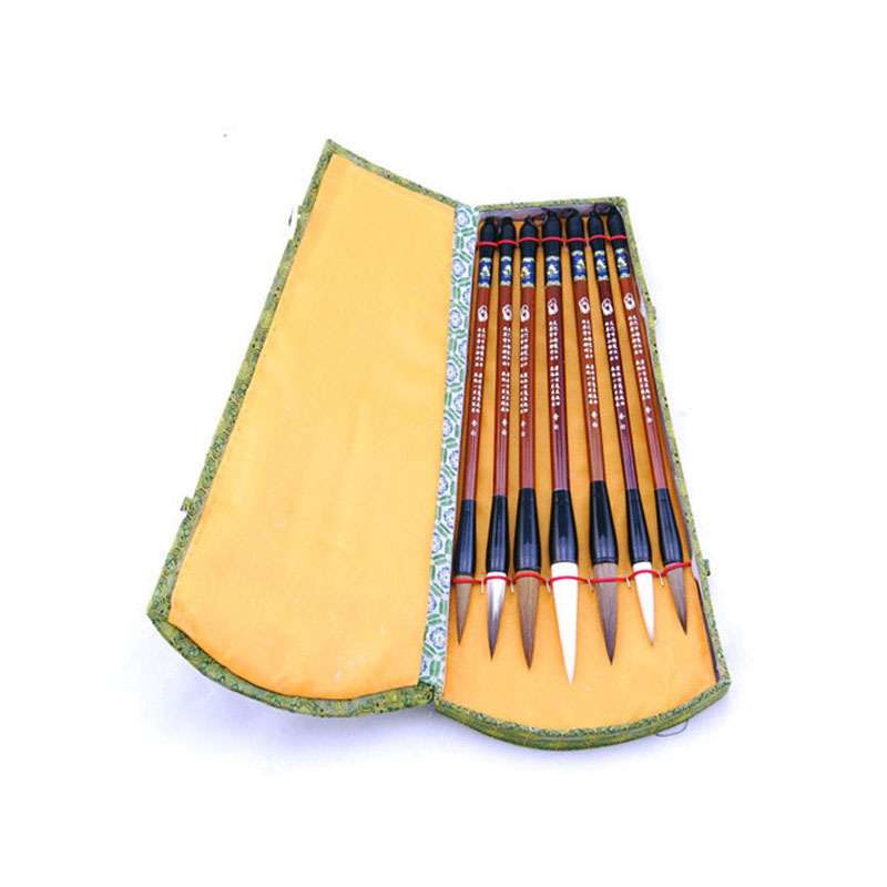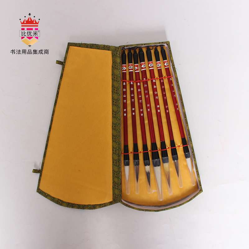 比优米 7支羊兼狼毫扇形礼盒毛笔套装【气壮山河】书法绘画毛笔