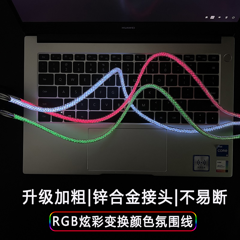 益星星发光七彩0.20cm米适用oppo小米11快充oppo k7.充电宝双头数据线两头一样的typec专用充电短线短款0pa93
