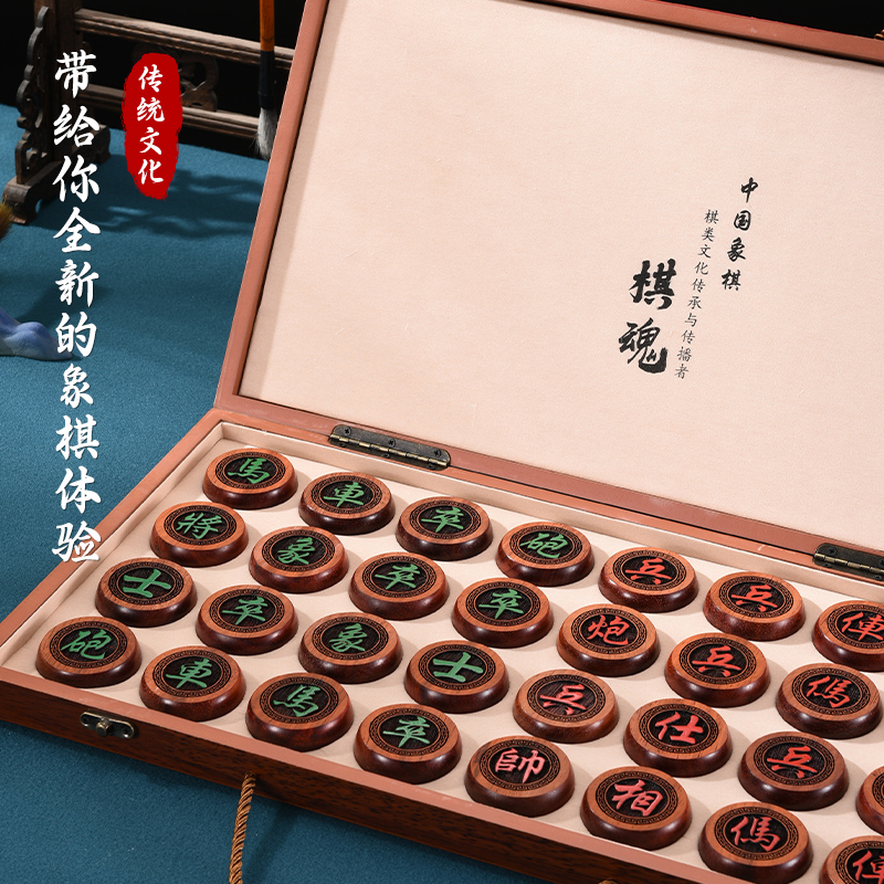 象棋中国象棋实高档折叠礼盒带棋盘高颜值木仿红花梨黑檀送礼成人