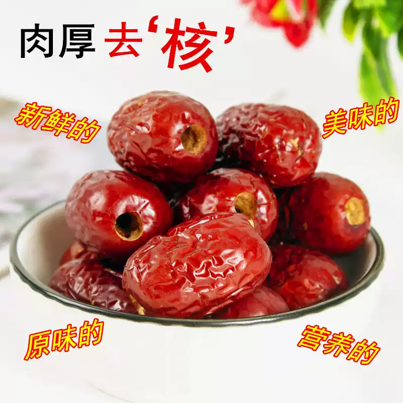 无核红枣新疆去核去皮若羌灰枣奶枣脱皮空心包粽子大红枣干货整箱
