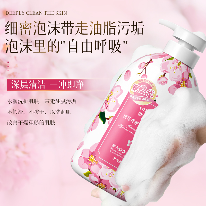 1000ml大瓶家庭装樱花香氛沐浴露清爽嫩肤美肌清洁保湿持久留香