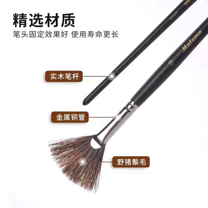 玛琅画笔426野猪鬃扇形毛笔鱼尾笔水彩油画树叶笔特殊造型笔多用