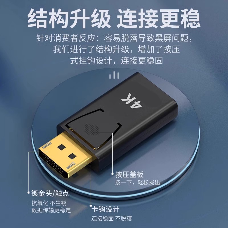 牧佳人dp转hdmi转接头4k高清接口转换器公对母笔记本电脑连投影仪