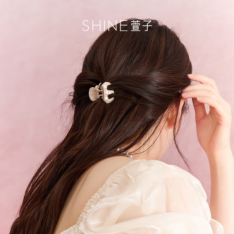SHINE萱子饰品气质莫兰迪粉亚克力小抓夹精致公主头发夹生日礼物