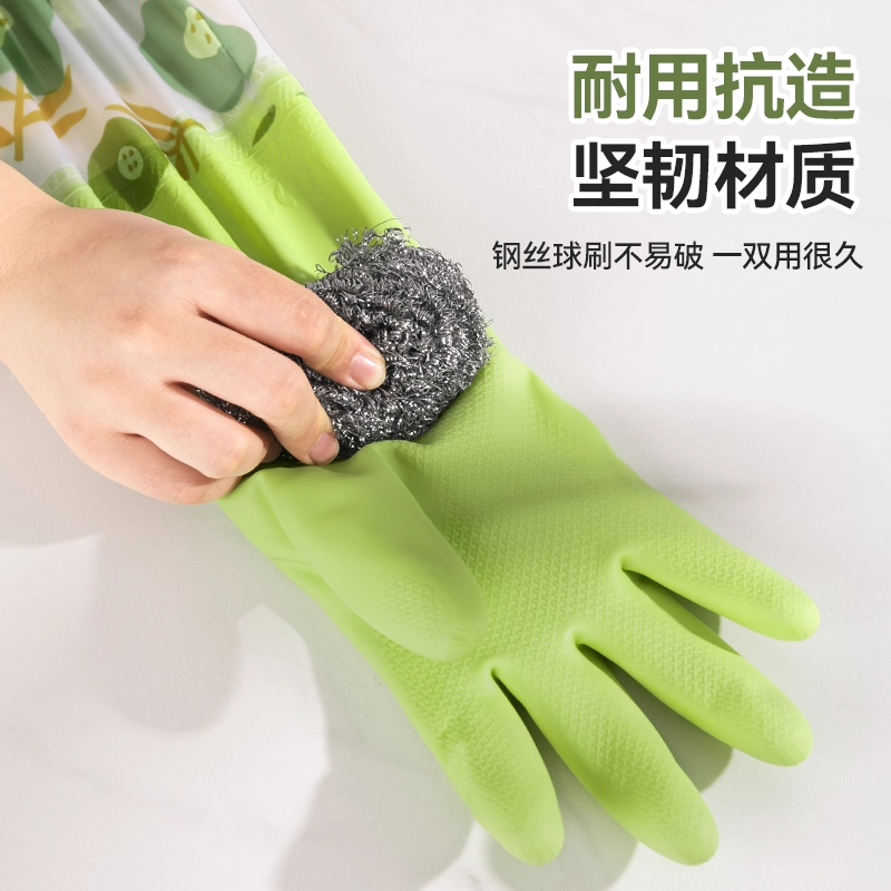 加绒洗碗手套冬季家务厨房耐用型女加厚橡胶乳胶刷碗洗衣清洁手套