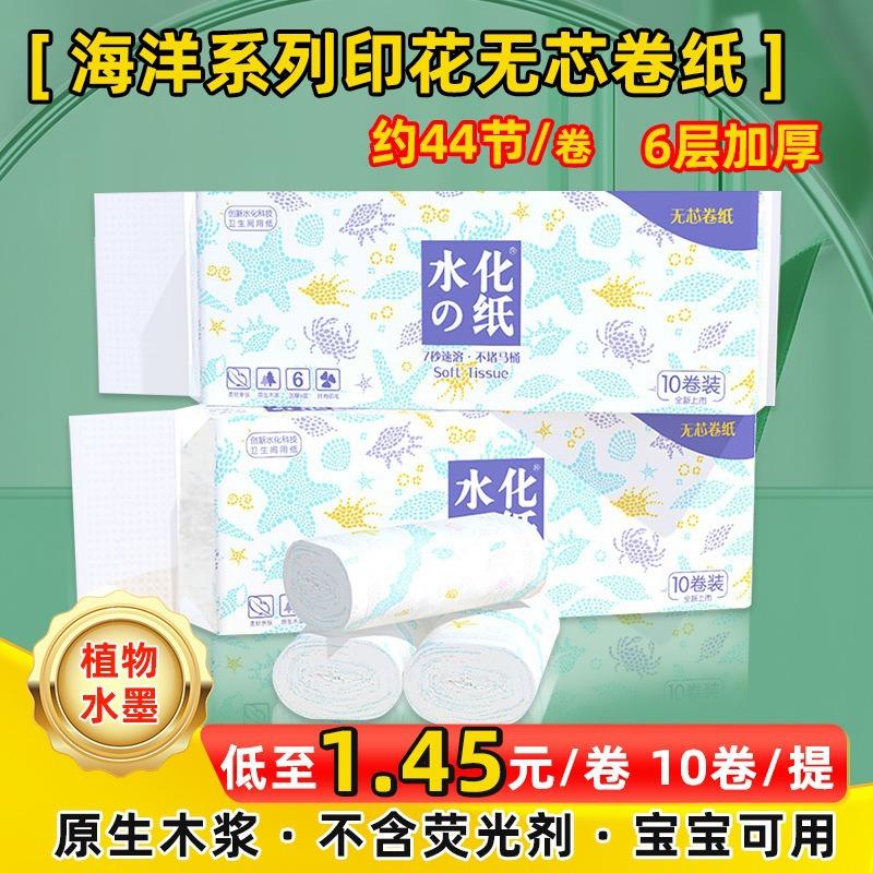 家用加厚印花纸巾水化海洋无芯印花卷纸卡通创意无芯速溶卫生纸