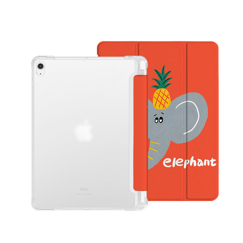 菠萝大象头艺术ins小众适用平板壳iPad7/8/9/10壳2020带笔槽Air2/3/4/5苹果2021第九代11Pro三折min