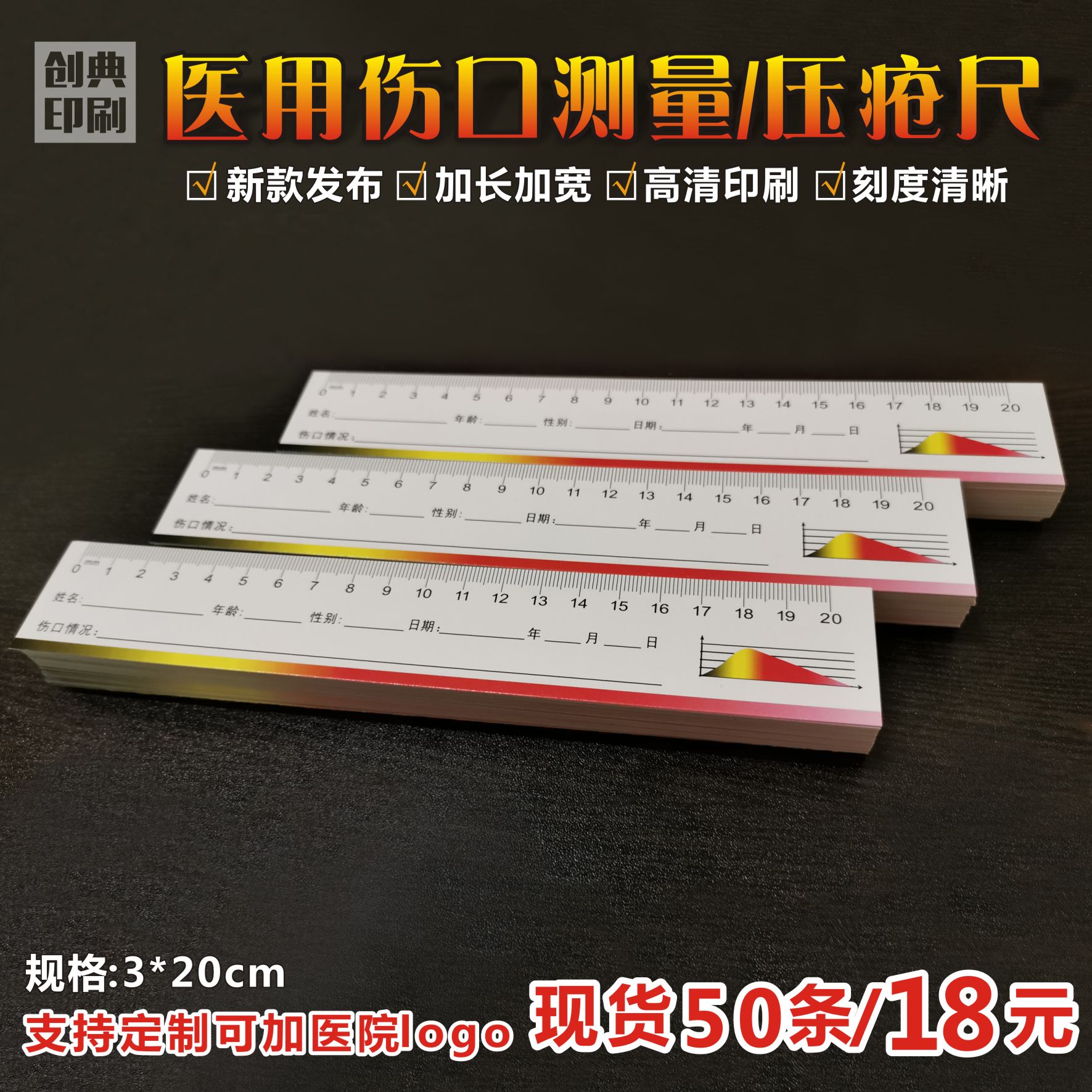 医用20cm一次性压疮尺病人伤口登记纸尺手术标本测量尺现货可定制