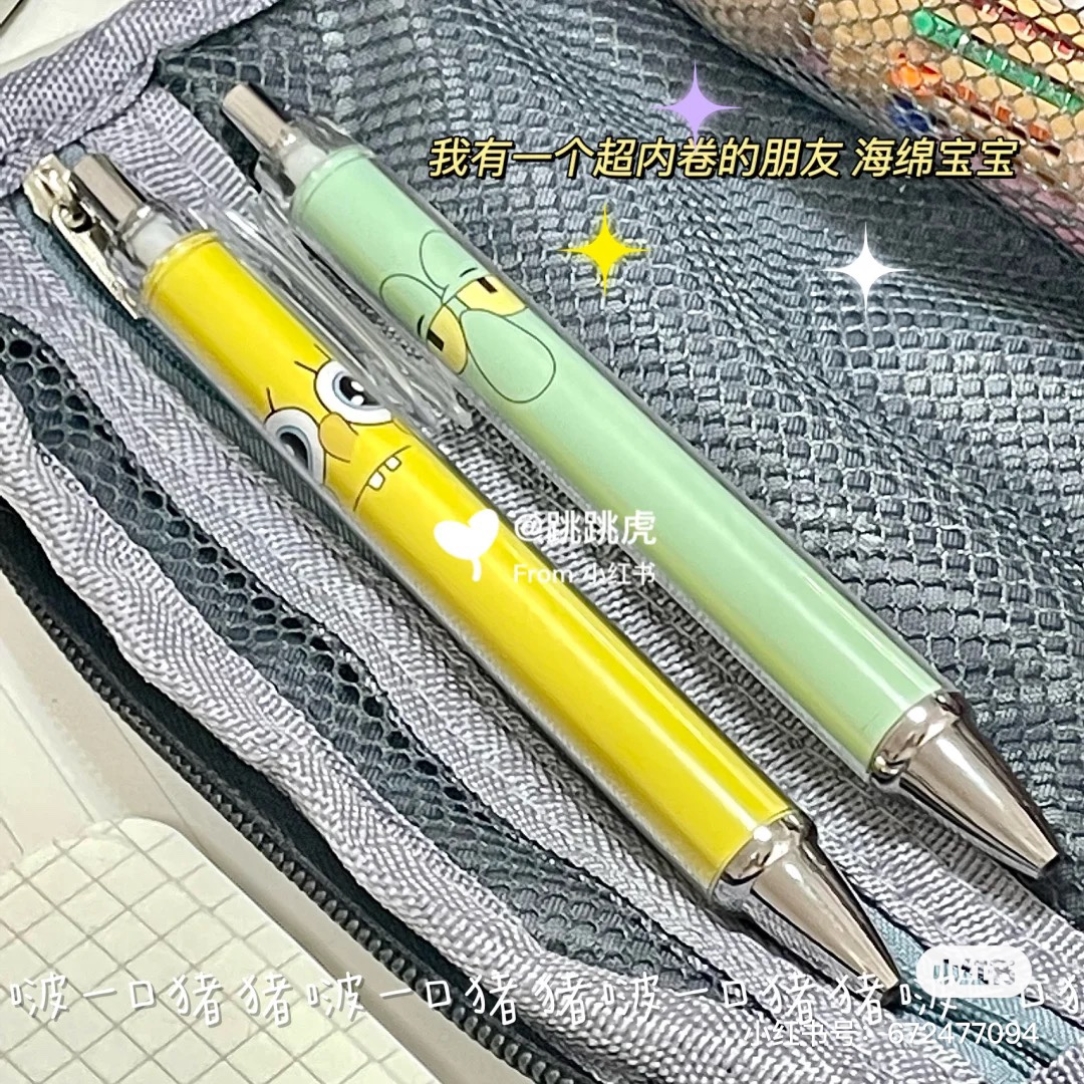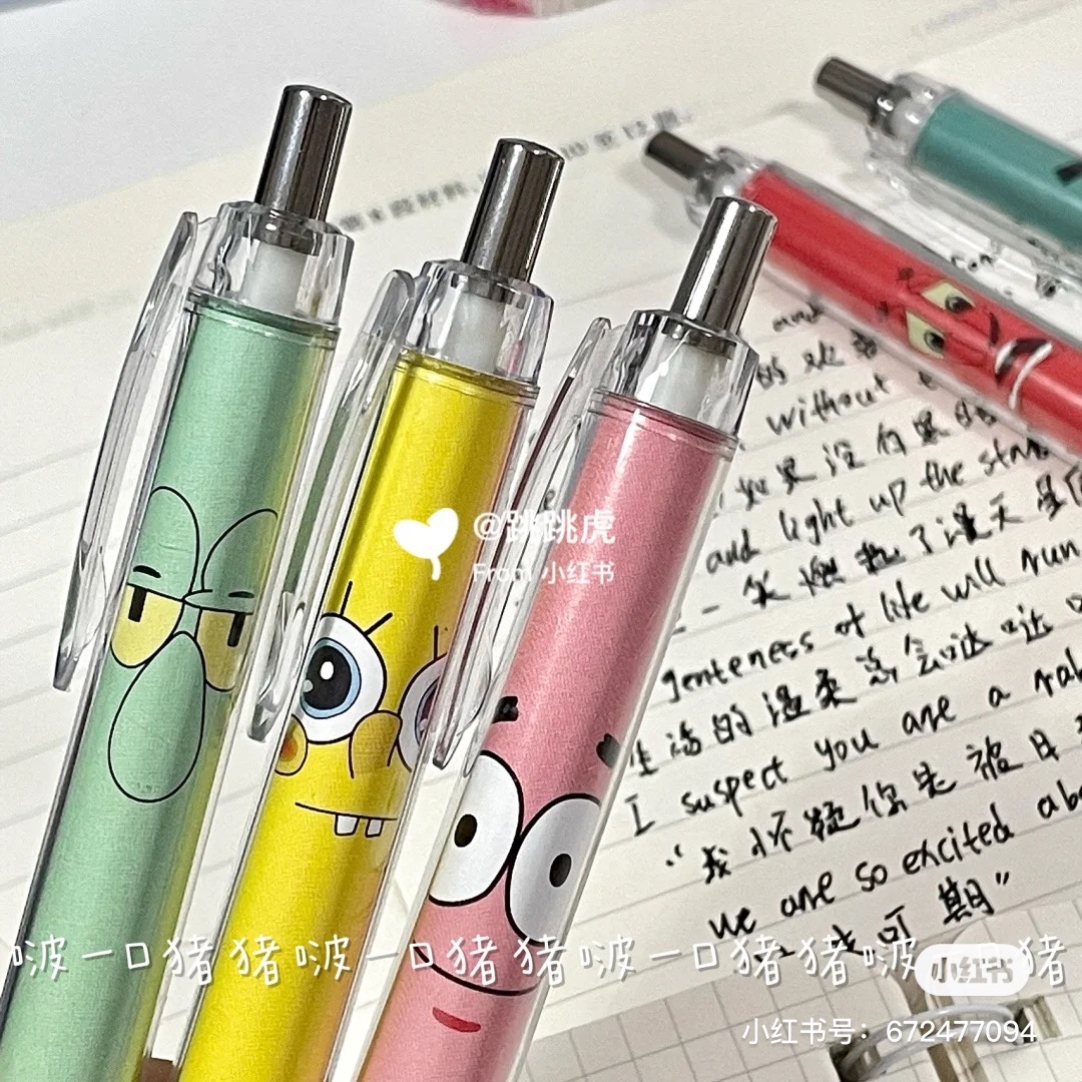 海绵宝宝按动黑笔ins高颜值按动笔章鱼哥笔学生动漫派大星透明笔
