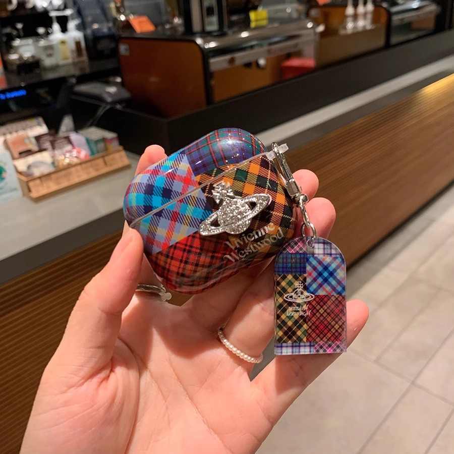 适用苹果airpods3保护套airpods2复古无线蓝牙耳机壳airpods4轻奢挂件airpodspro菱格立体闪钻土星彩色拼接女