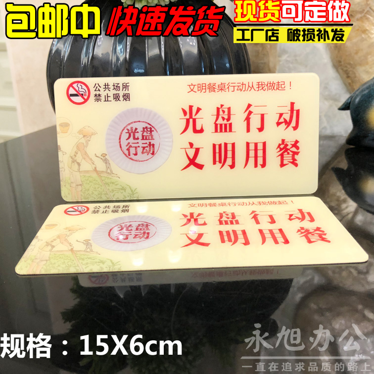 亚克力标牌光盘行动从我做起按需取量杜绝浪费文明用餐温馨提示牌 节约粮食 按需取量