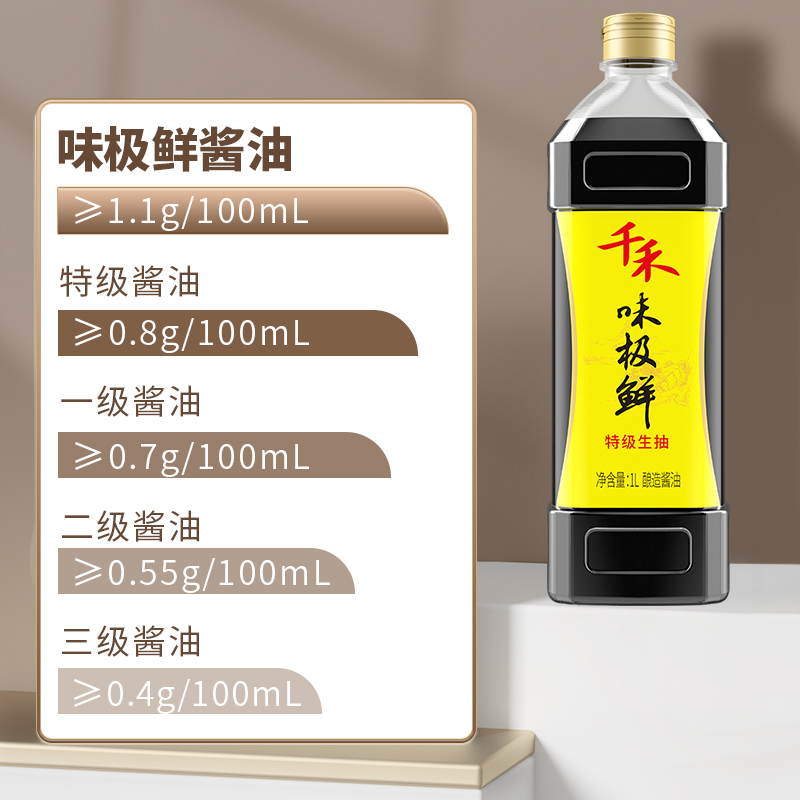 千禾特级味极鲜生抽酱油1L家用厨房调味料凉拌点蘸炒菜烹饪