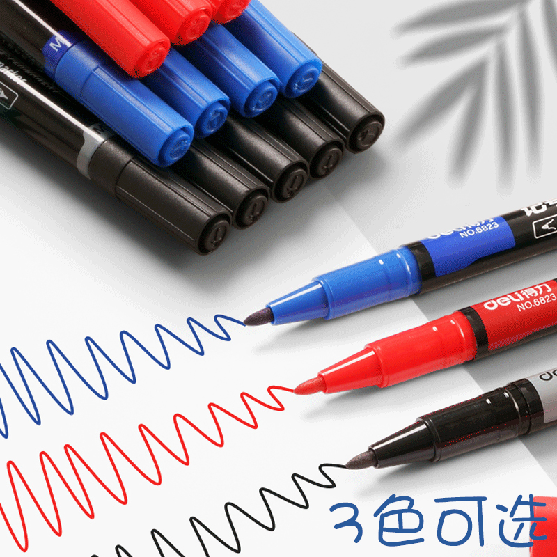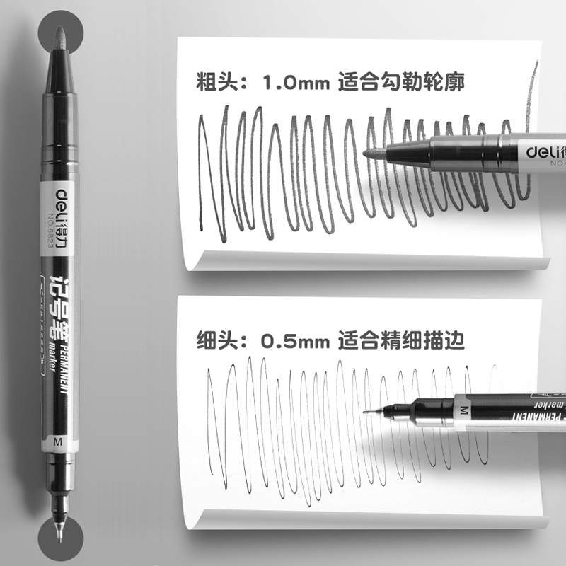 得力小双头记号笔黑色美术专用勾线笔小学生儿童绘画勾边笔描边马克笔粗细两头小支油性不透色不掉色防水油性