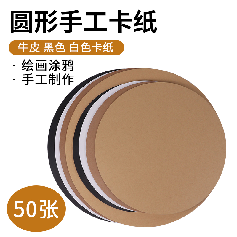 圆形卡纸白卡纸圆形牛皮纸黑色画纸美术专用丙烯马克笔画画彩色粘土手工儿童加厚红色圆外方内圆空白绘画厚硬