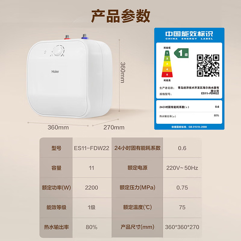 海尔小厨宝11升厨房热水器储水式电家用一级能效大水量厨房热水器