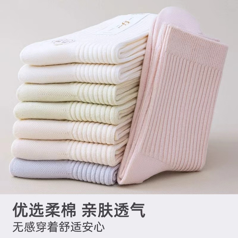 袜子女款纯棉中筒袜秋冬季抗菌防臭吸汗运动棉袜春秋款无骨短筒袜