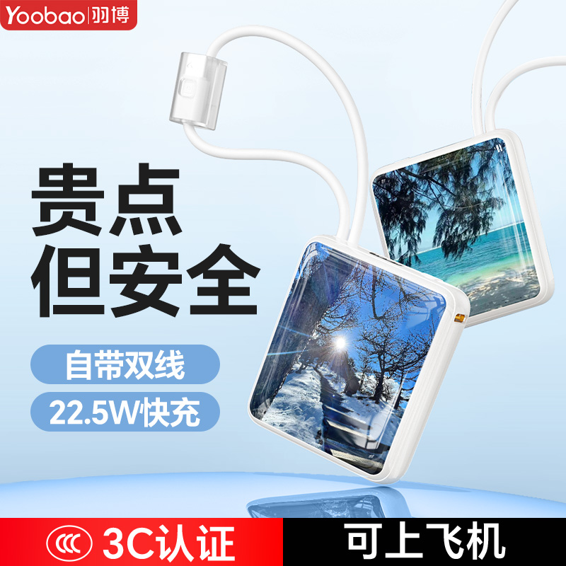 【3C认证可上飞机】羽博2025新款彩绘风景迷你充电宝自带线10000毫安超级快充22.5W便携移动电源适用华为苹果
