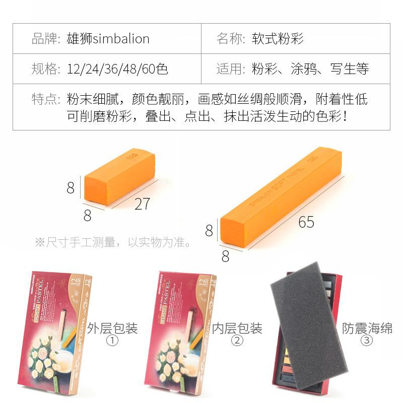 雄狮色粉笔48色软式粉彩色粉棒24色套装36色素描定画液兽头色粉美术画画专用手绘扭扭棒上色单支色粉粘土颜料