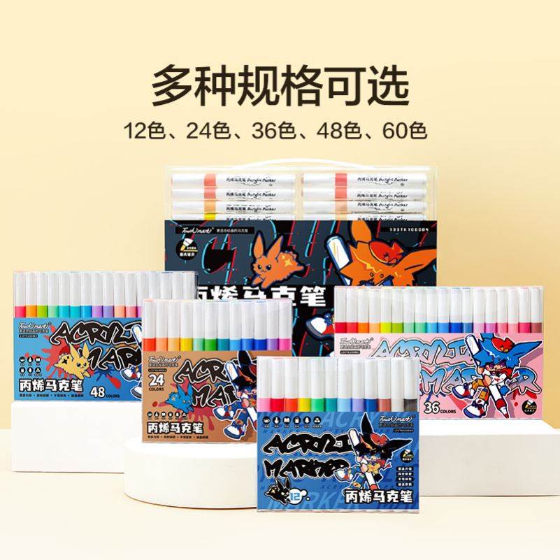 直液式丙烯马克笔48色儿童美术专用小学生用马克笔diy可叠色软头丙烯笔可水洗安全水彩笔咕卡笔24色36画画笔