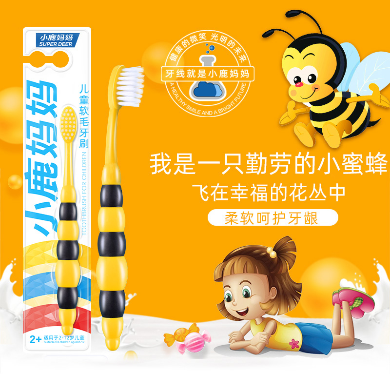 小鹿妈妈儿童牙刷宝宝换牙期软毛口腔清洁小头1-3-12牙缝牙齿舌苔