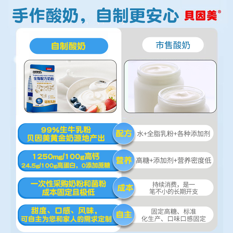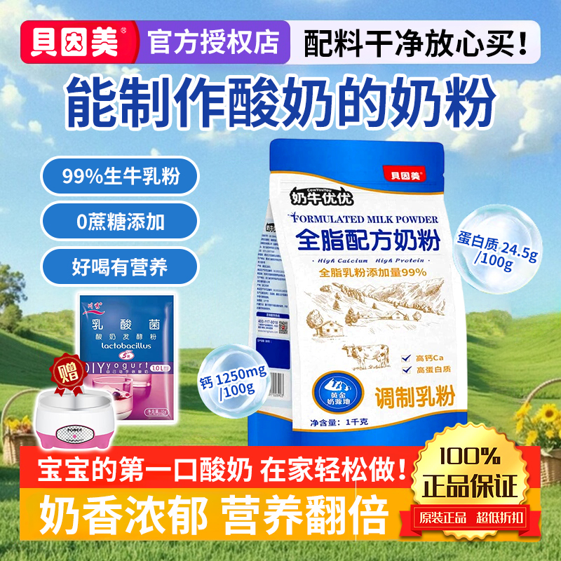 贝因美全家营养奶粉1kg袋装高钙0蔗糖添加家用制作营养酸奶牛奶粉
