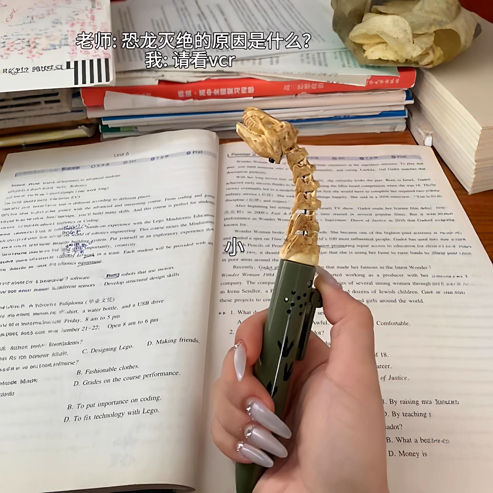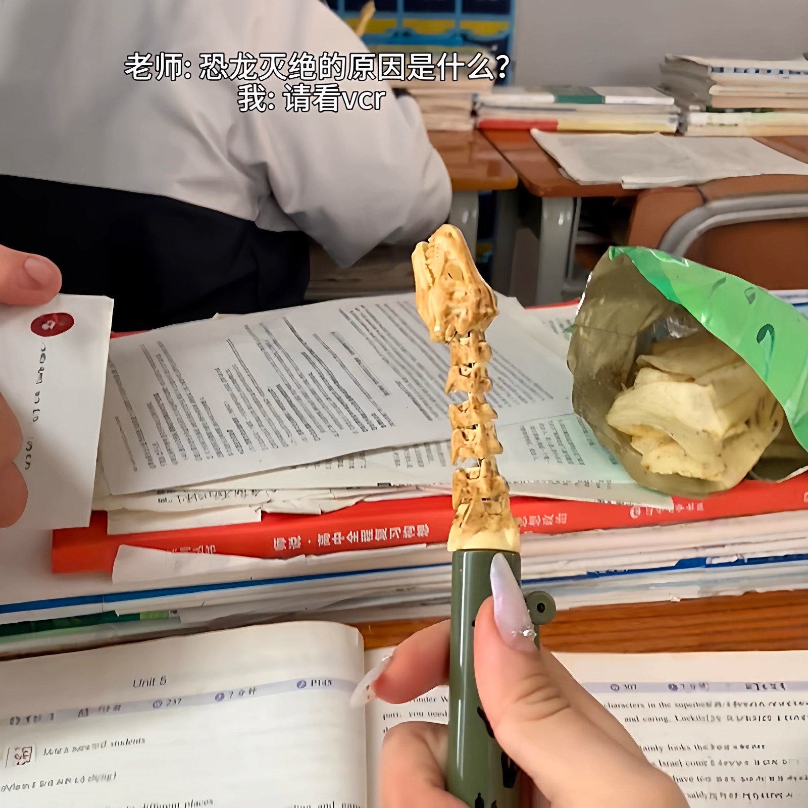 骨骼恐龙笔按压张嘴可夹薯片零食笔创意趣味搞怪解压签字笔签字笔