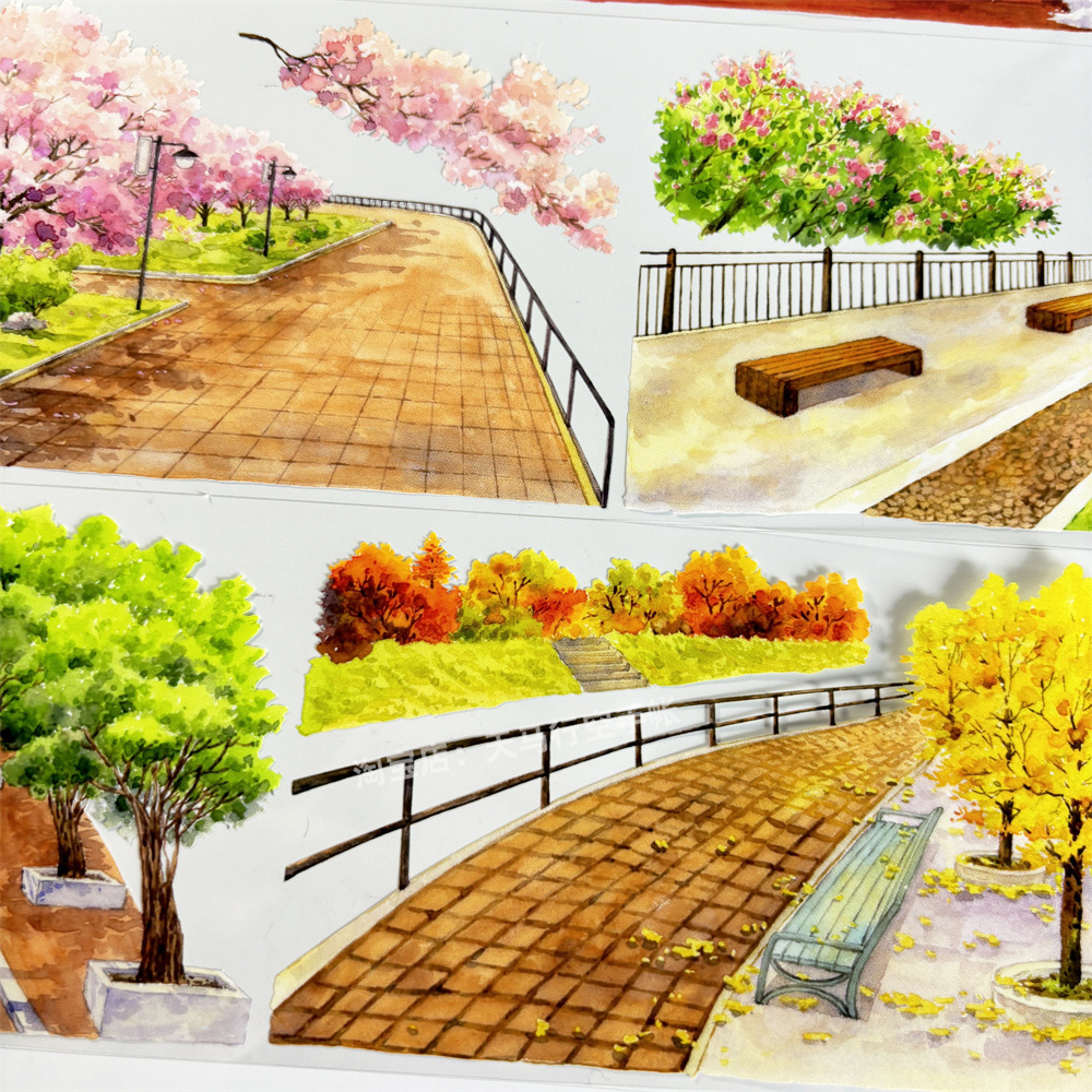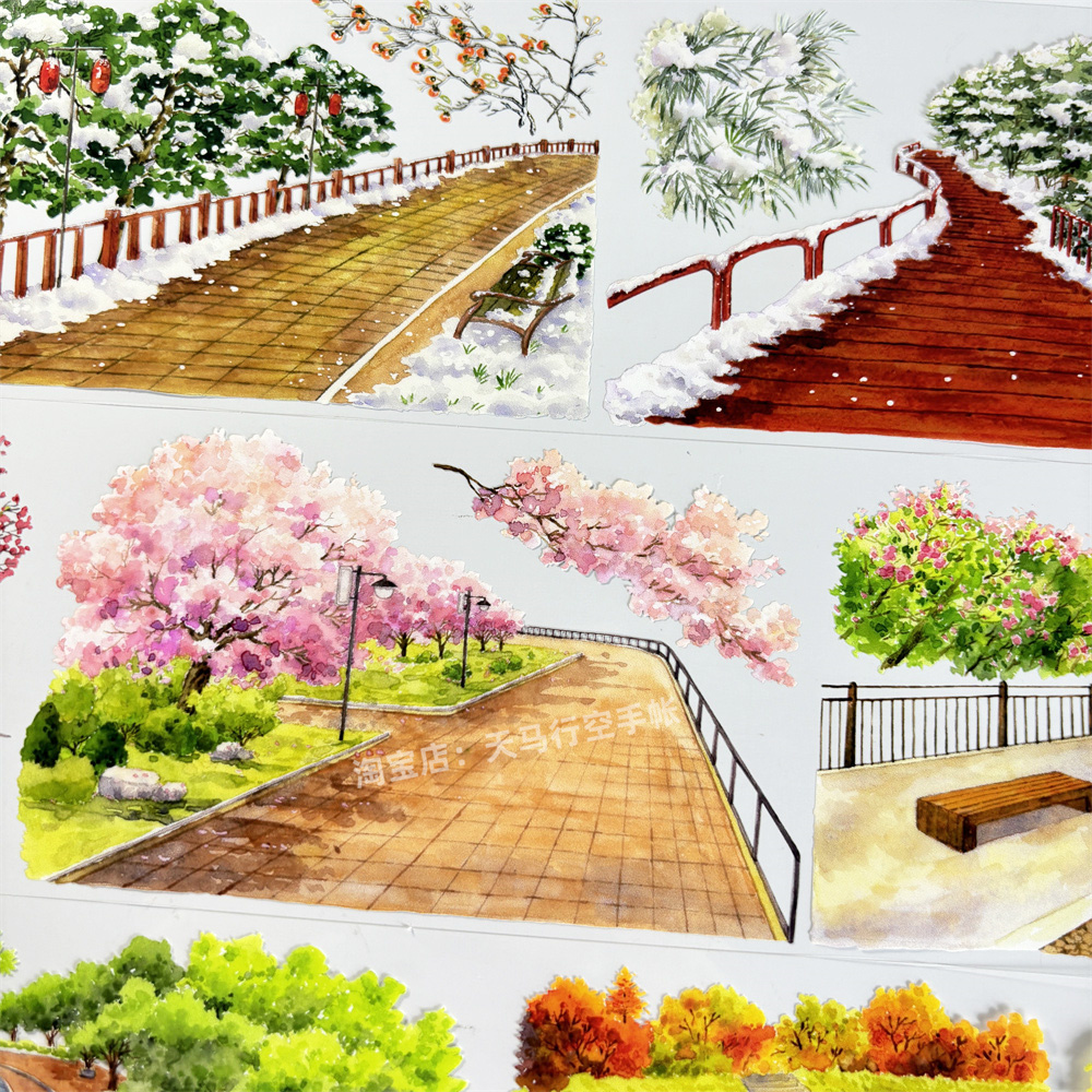 手帐分装胶带四季步道景物志风景道路古风PET素材账流麻贴纸咕卡