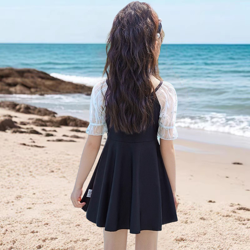 儿童泳衣女童2025新款夏连体蕾丝公主风可爱泡温泉中大童泳装套装