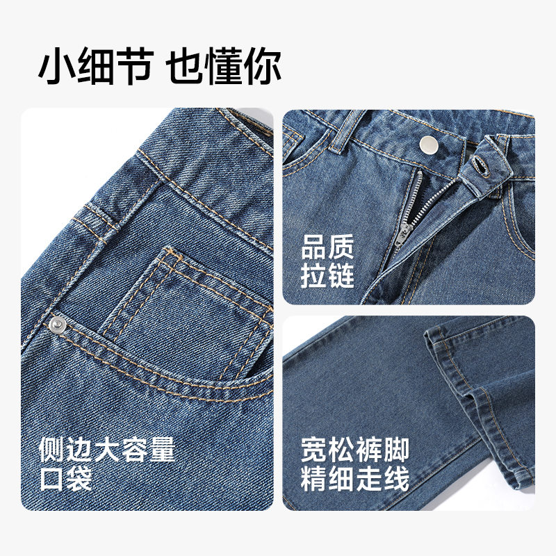 KMV真维斯复古蓝阔腿裤女2025夏季新款美式搭配高腰显瘦女款裤子