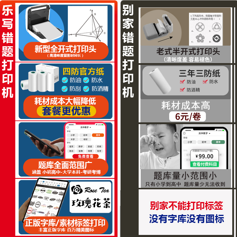 乐写高清错题打印机迷你小型 学生便携式错题整理神器蓝牙家用随身小票口袋打印机无需手机便宜