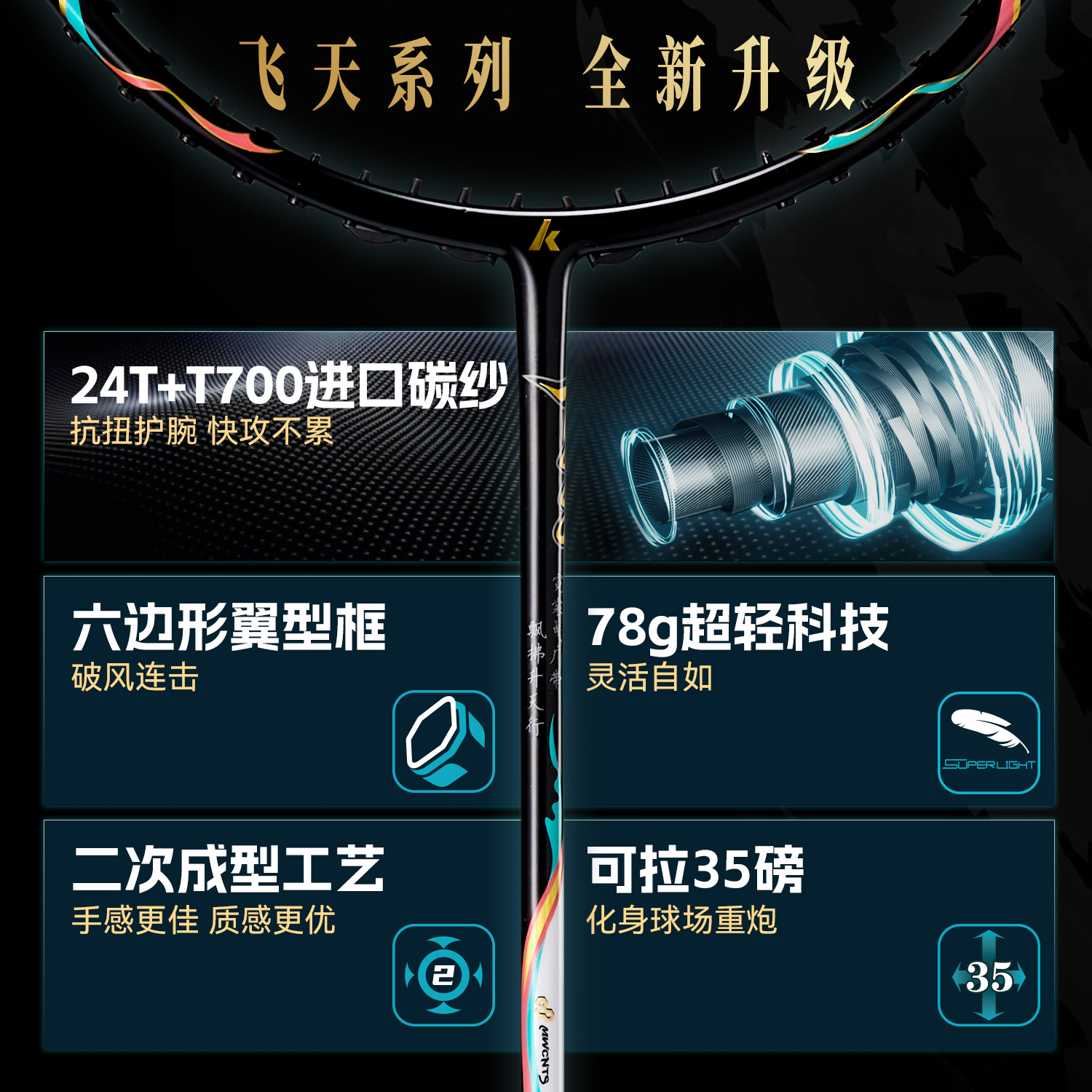 kawasaki川崎飞天羽毛球拍男女碳素纤维单拍超轻攻防兼备进阶比赛