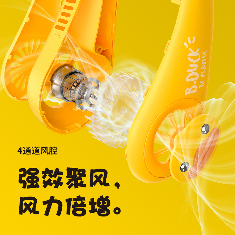 几素B.Duck小黄鸭挂脖风扇便携式迷你挂颈脖子小无叶USB懒人静音随身充电小型厨房降温儿童空调电扇夏天