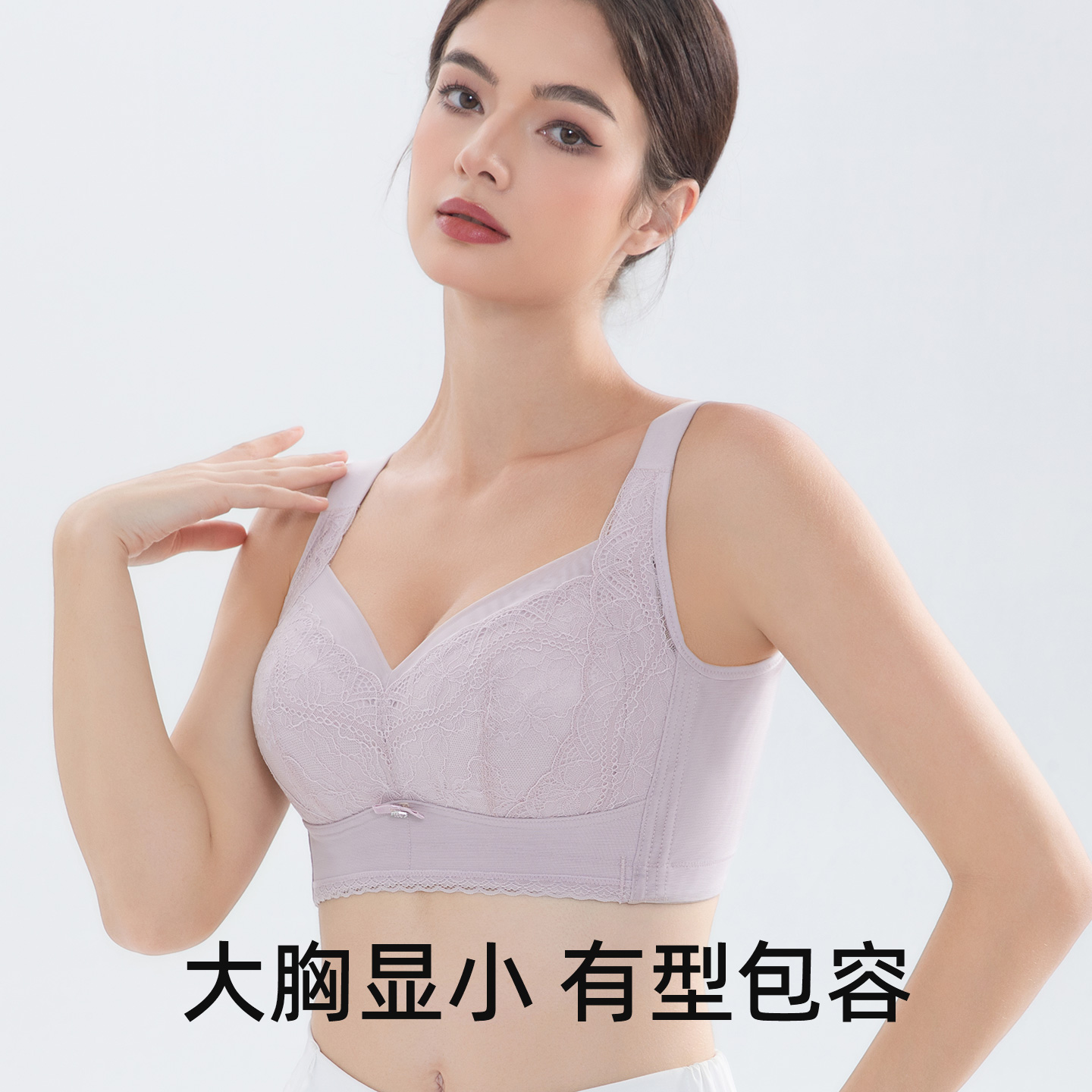 茜施尔无钢圈蕾丝内衣女薄款大胸显小文胸收副乳防下垂聚拢胸罩