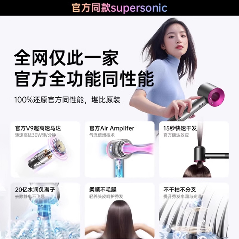 高速吹风机家用负离子护发大风力中空无叶速干降噪电吹风筒华强北