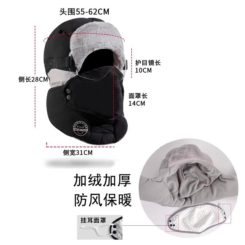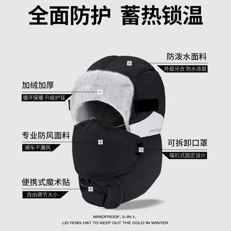 冬季加绒雷锋帽子女秋冬护耳东北防寒面罩骑车头套男保暖神器防风