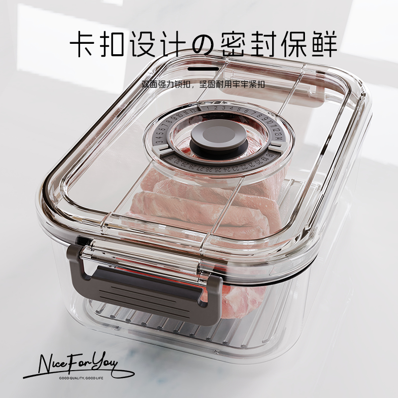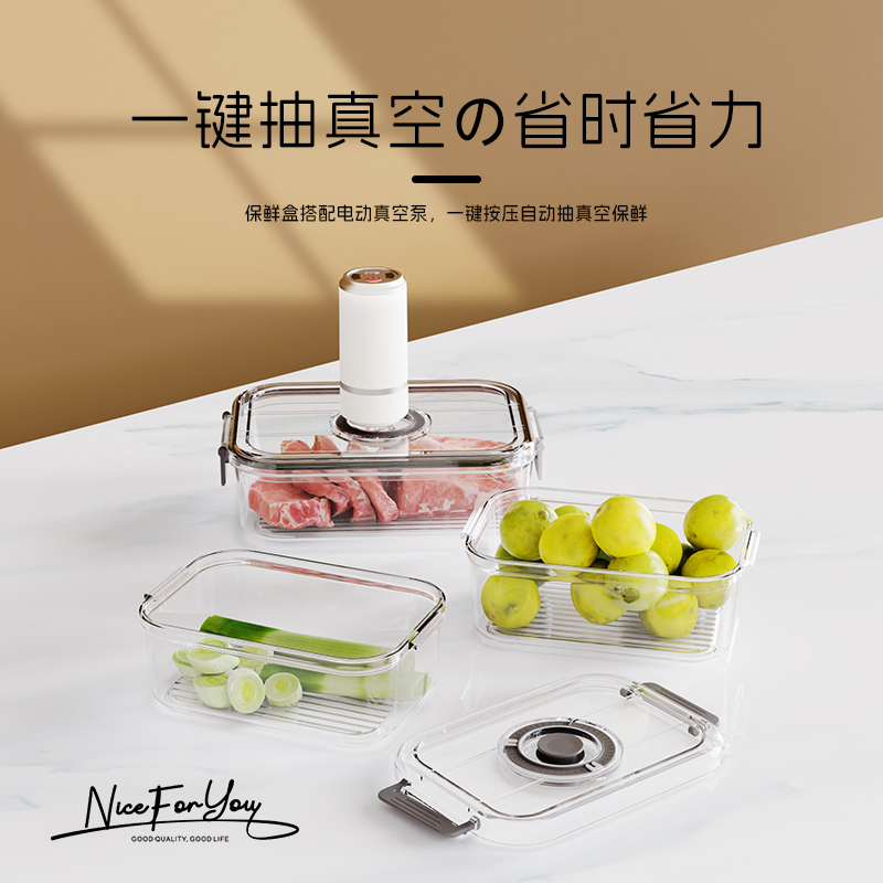 真空保鲜盒长方形带盖冰箱大号专用大容量透明密封盒厨房冷藏抽拉