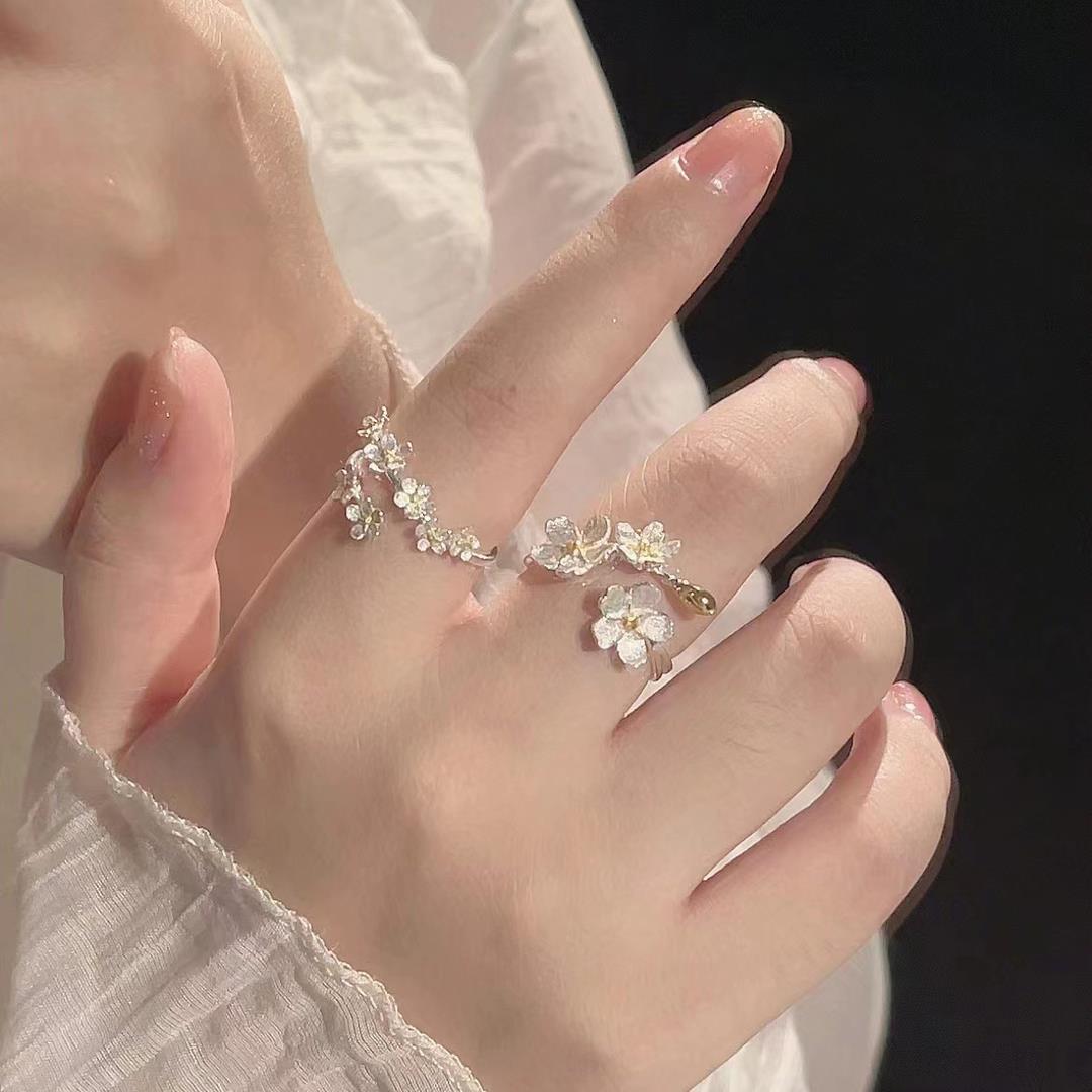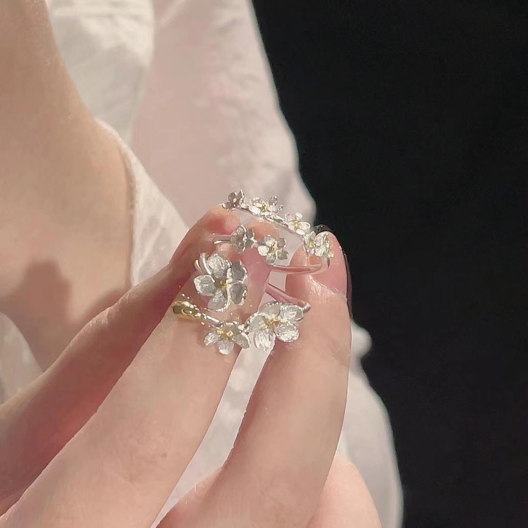 【繁花似锦】山茶花闺蜜对戒小众设计感轻奢简约气质开口闺蜜学生