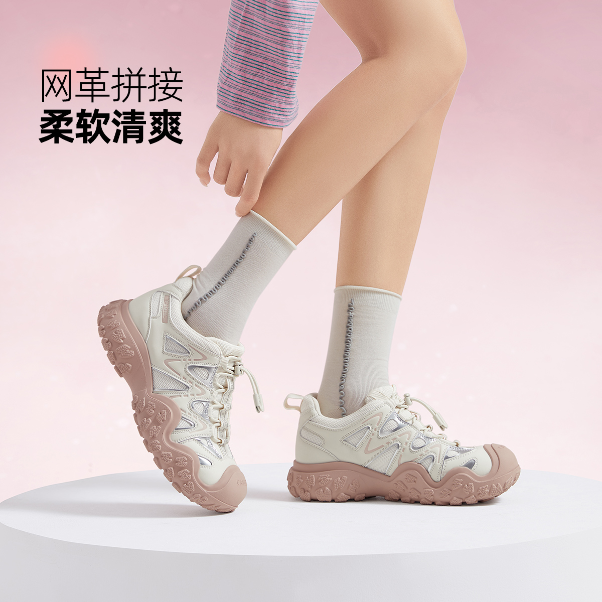骆驼女鞋2025春夏季新款透气杏色爆款厚底增高老爹鞋休闲运动鞋女