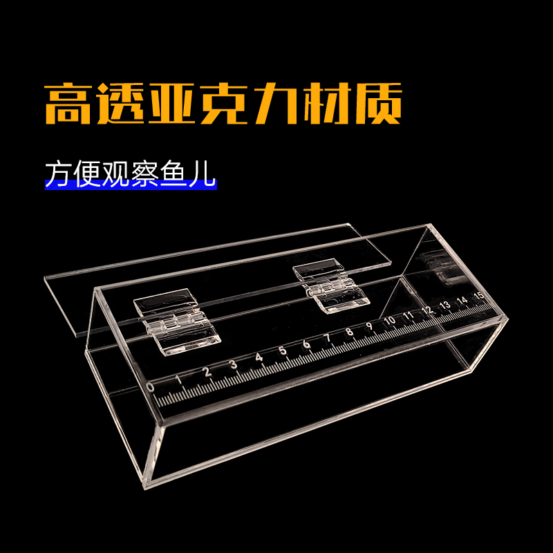 鳑虎小钓透明水晶观鱼盒野采鱼盒小物钓带刻度尺式溪流盒