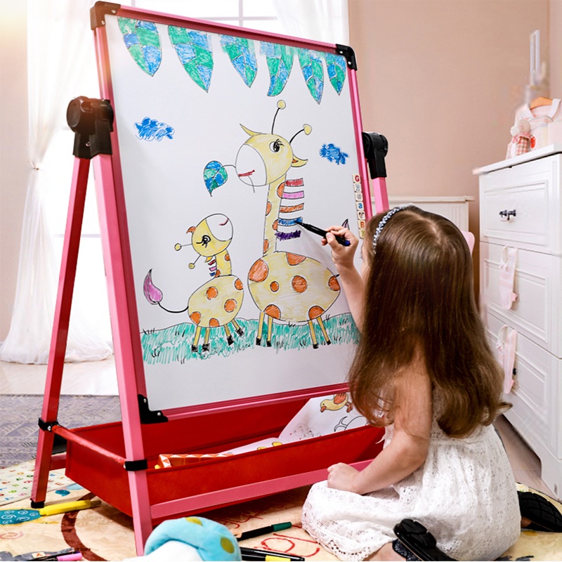幼儿童绘画画板宝宝磁性便携双面家用教学小黑板折叠套装支架式涂