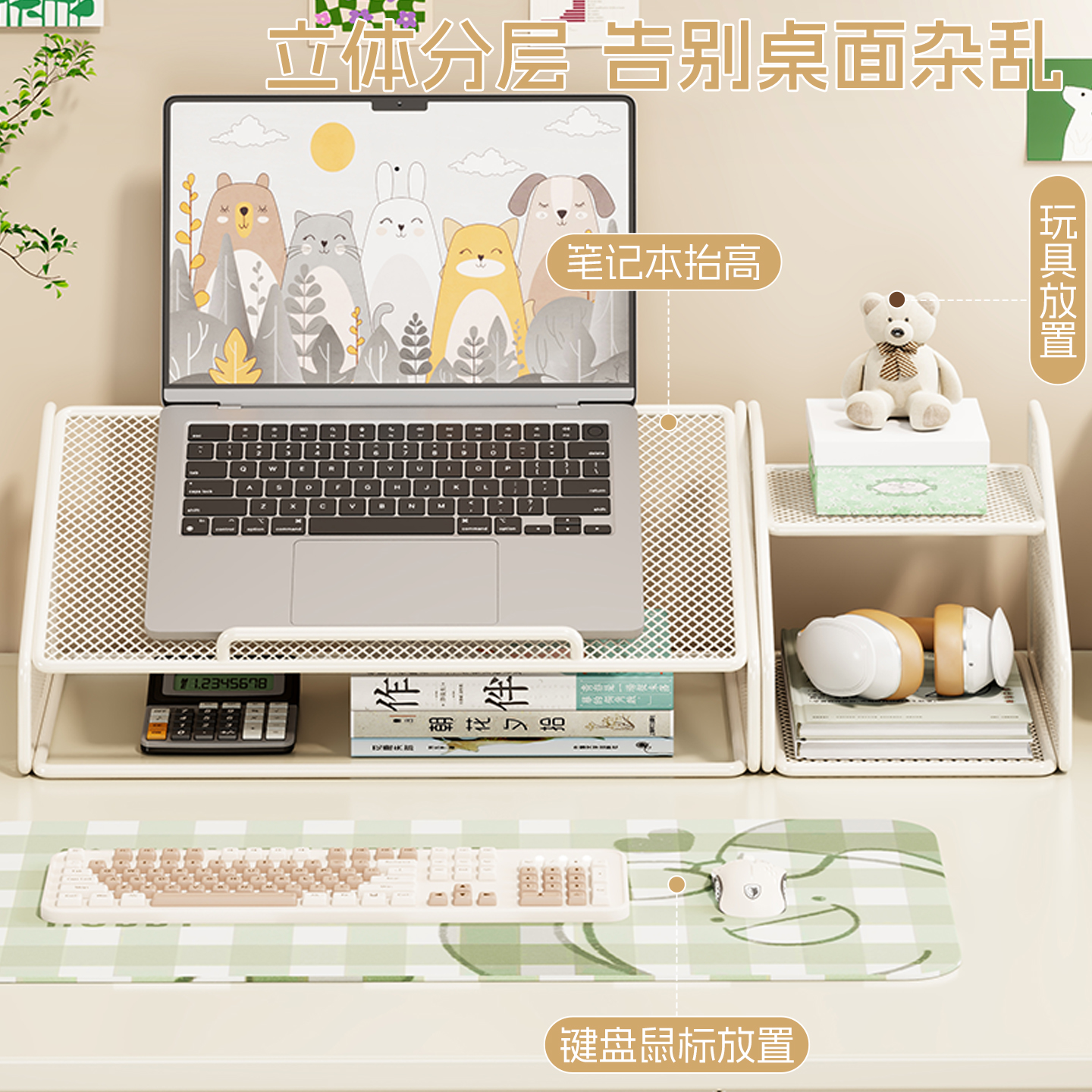 笔记本电脑支架桌面抬高托盘办公室工位家用金属架子显示器垫高散热底座工位整理收纳神器宿舍平板通用支架