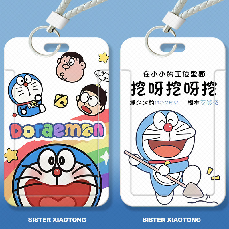 饭卡卡套哆啦A梦励志学生滑盖公交卡身份证件保护套门禁卡校园带挂绳挂脖羊城通工作证工厂牌保护套