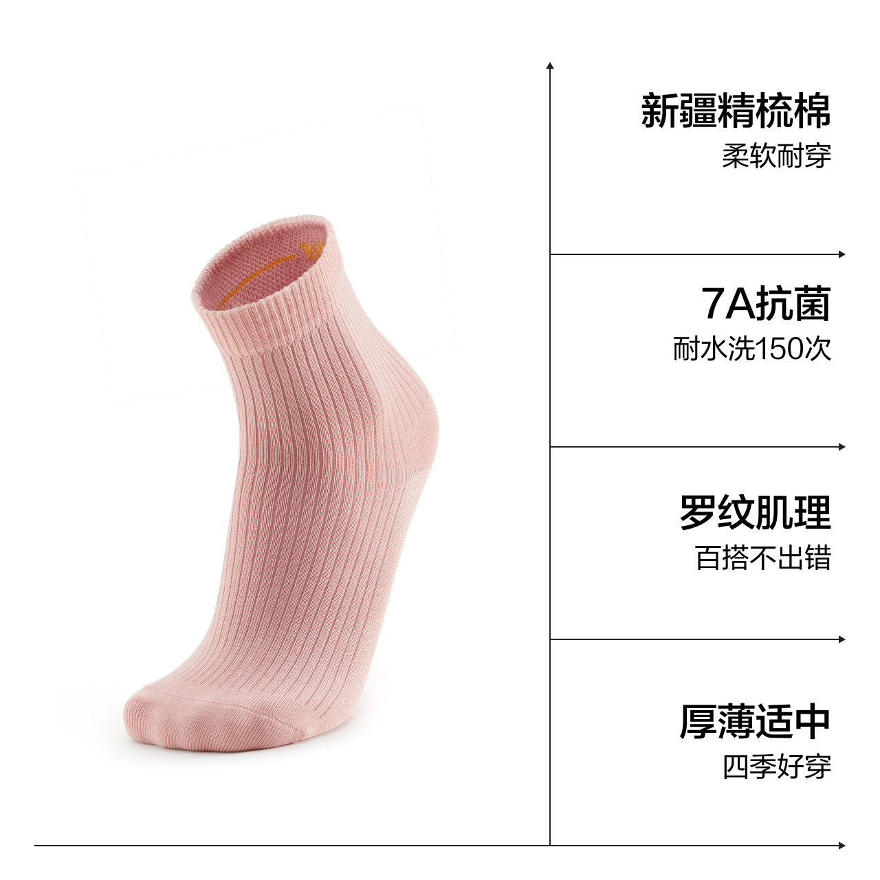 7A抗菌|蕉内银皮301S袜子男中筒袜吸汗防臭运动短袜秋季长袜棉袜